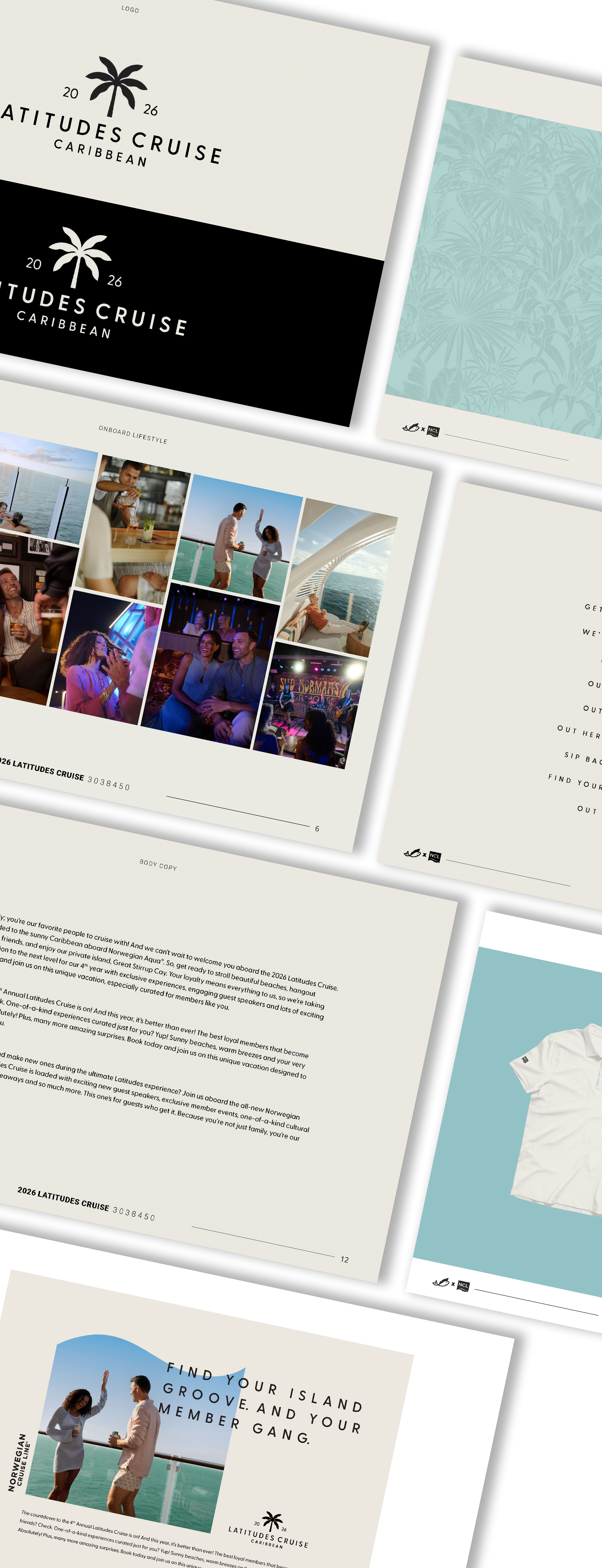The Latitudes Rewards Members Cruise has quickly become a highlight for those loyal to the NCL brand. Coming into its 4th year and bigger than ever, the team requested that the event get proper branding. This cruise changes ship and destination every year, so they wanted something that could evolve and have the essence of that year’s destination. Additionally, the imagery for the campaign should invoke a fun and carefree feel.
